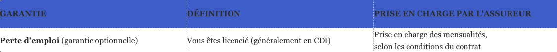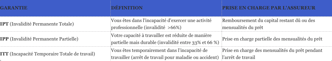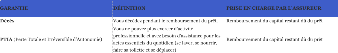 Les principales garanties d’un contrat d’assurance emprunteur sont :